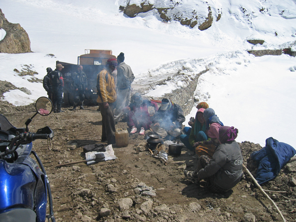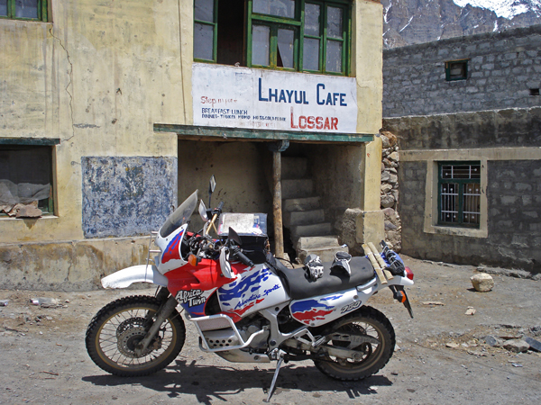 Ich verfluchte den Architekten des Hotels und fuhr ganz langsam weiter. Kaum in Kaza eingetroffen, betäubte ich mich mit zwei Schmerztabletten und legte mich eine halbe Stunde aufs Ohr. Danach spannte ich mein Gepäck auf, denn schließlich wollten wir am Mittag noch bis nach Nako weiterfahren.