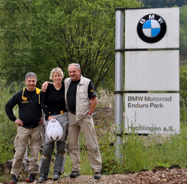 Manfred Spitz lud mich in den BMW Enduro-Park Hechlingen ein, um mein nepalesisches Schottertrauma zu bewältigen. Mit Vorfreude kam ich dieser Einladung nach und ich wurde herzlichst von der guten Seele des Parks Helmut Rosenberger und Manfred begrüßt. Doch kaum auf einer F800 GS unterwegs, holte mich die Realität sehr schnell wieder ein. Die Schotterblockade baute sich wie ein Tsunami vor meinem Visier auf und die Angst kroch in jeden meiner Muskeln. Keine Ahnung woher mein Trainer Walter die Geduld und die Ruhe nahm, mich 2 Tage durch die Passagen des Parks zu betteln. Am Ende des zweiten Tages war ich so von mir enttäuscht und frustriert, dass jedes Lob von Walter an mir abprallte. Ich hatte mir selbst solch einen Druck auferlegt und konnte meinen Tränen keinen Widerstand mehr bieten. Ich heulte wie ein Schloßhund und habe Walter damit wohl sehr erschreckt – Sorry Walter, es lag definitiv nicht an Dir!