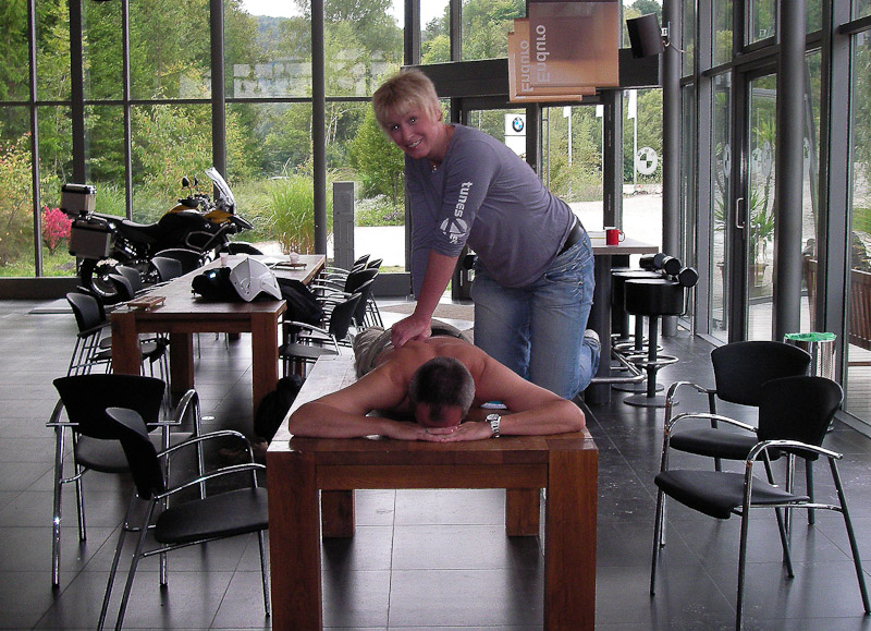 Aber ich muss sagen, er hatte absolut Recht. Mit der 1200 GS fiel es mir wesentlich leichter die Tücken des Parks zu bewältigen und ich konnte dieses Mal sogar richtig laut in meinen Helm hinein lachen. Zudem konnte ich mich etwas an Walter rächen, denn er hatte Probleme mit seiner Halswirbelsäule und ich konnte den Physiotherapeuten nachgesagten Sadismus voll ausleben ;-) .