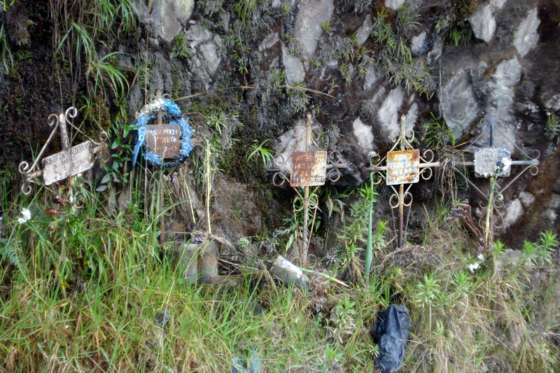 Als diese Strecke früher eine Hauptverkehrsader war, kamen mehrere Hundert Menschen im Jahr dort um, da die Autos, LKWs und Busse in die Tiefe stürzten.