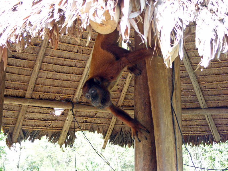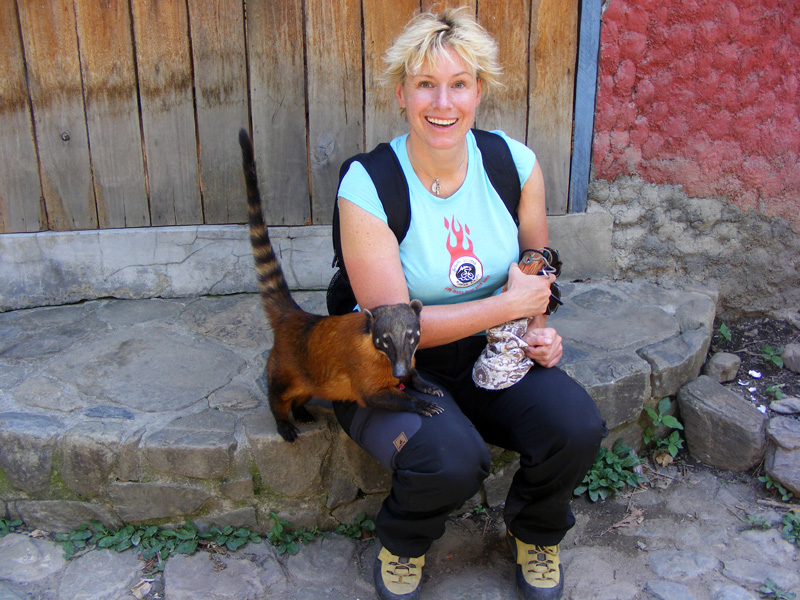 In Yolosa war unsere Abfahrt dann zu Ende. Nach 67km Downhill und einem Höhenunterschied von 3500m kamen wir in einer sehr schönen Lodge an. Hier wurden vom Zoll beschlagnahmte Tiere aufgefangen und Artgerecht gehalten. Die Affen tobten frei im Gelände herum, Nasenbären tippelten einem über die Füße und verschiedene Vogelarten flogen einem um die Ohren. Allerdings mussten wir Schmuck, Sonnenbrillen, Hüte und Geldbeutel einschließen, da die Affen eine diebische Ader hatten.