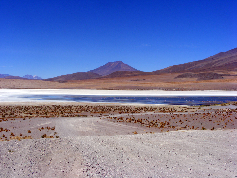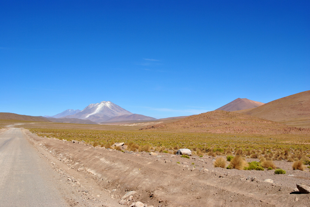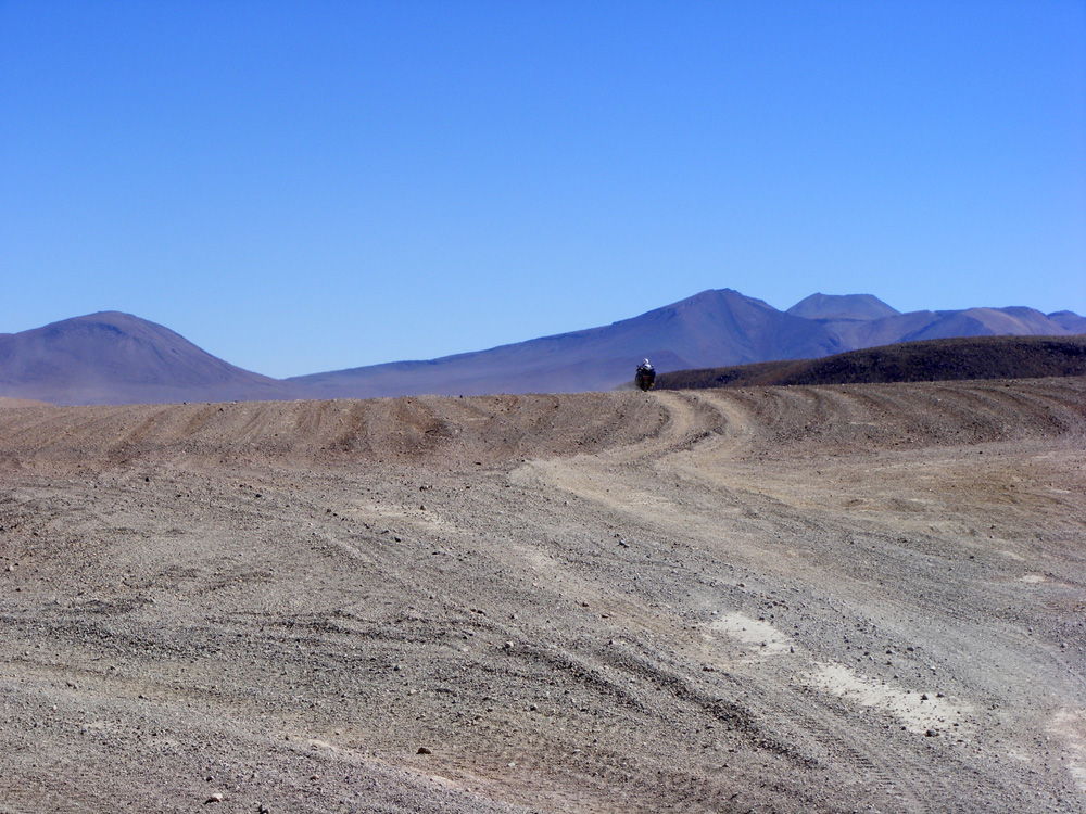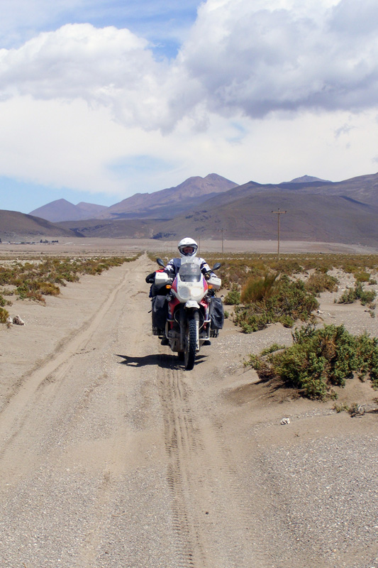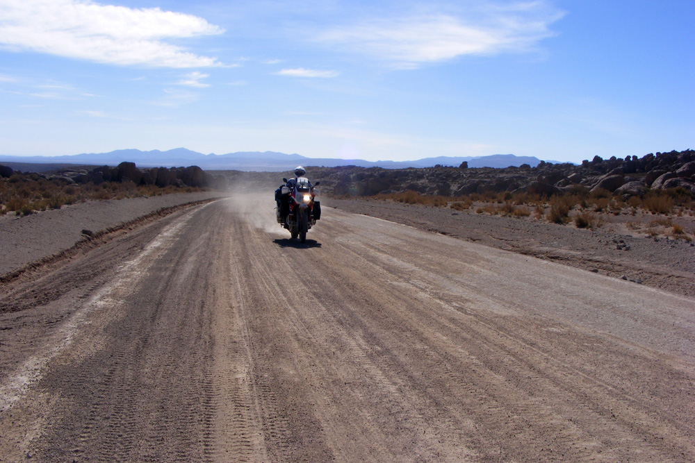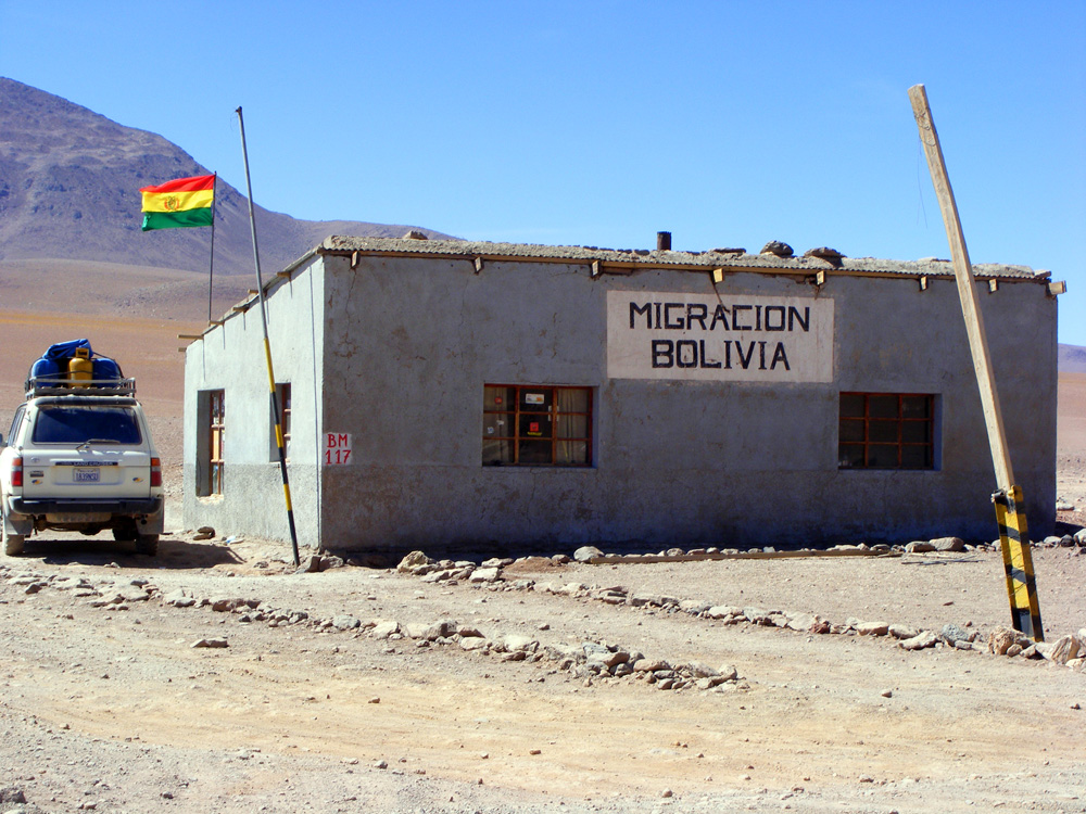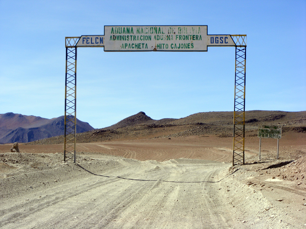 Uns wurde gesagt, dass die Straßen besser werden würden. 15 km nach der Laguna Colorada wurden die Straßen dann auch schlagartig besser! Wir kamen wesentlich schneller voran und hatten auch wieder Spaß am Motorradfahren. Um halb zehn erreichten wir bereits die Zollstation, wobei wir uns auf einer Höhe von 5044 m wieder fanden. Zügig wurden die Stempel in unsere Carnets gedrückt und wir konnten bereits nach 10 min weiter fahren.