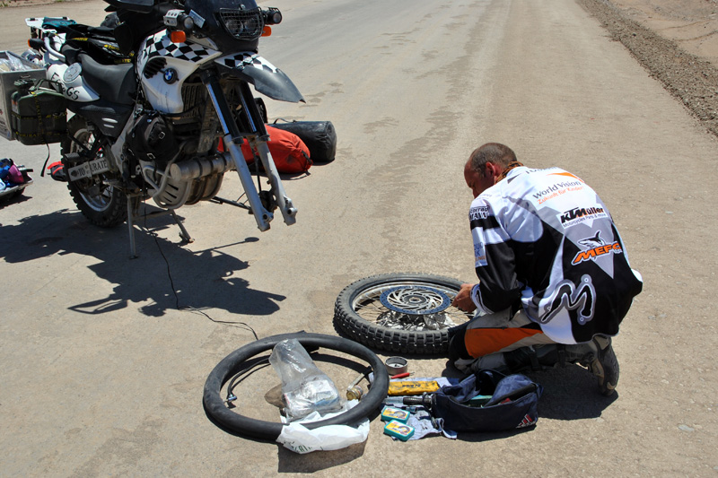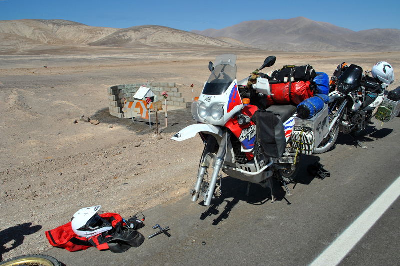 Das Packen ging inzwischen fast automatisch und bis kurz vor Vallenar war auch alles in Ordnung, doch 40 km vor dem kleinen Städtchen mussten wir dann Konni´s Vorderreifen verarzten.