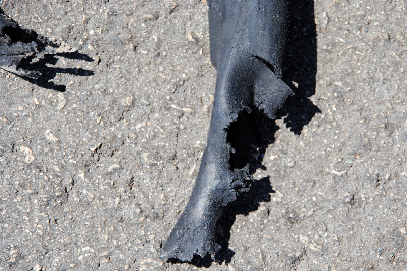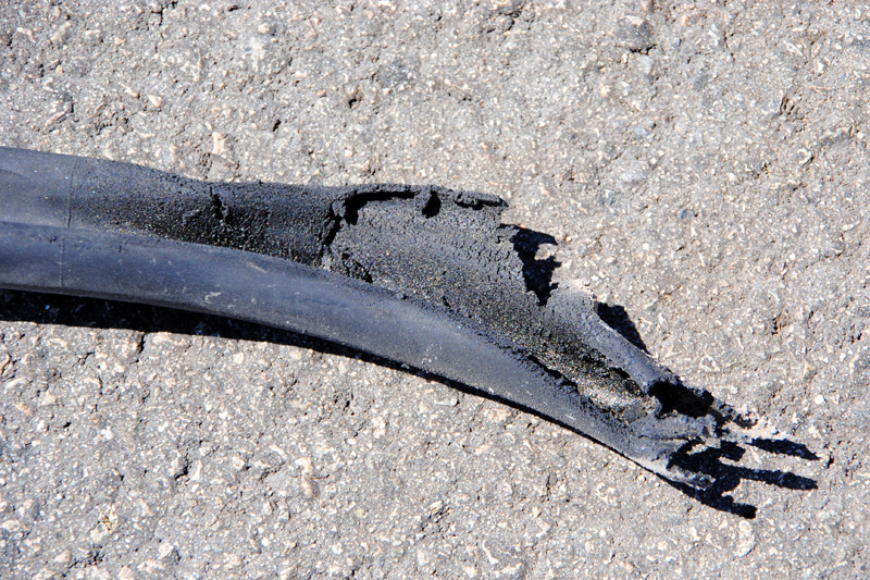 Schlauch geschmolzen, Felgenband gerissen, geschmolzenes Gummi klebte im Reifeninneren