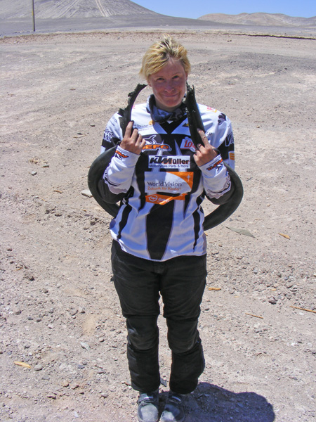 Ca. 170km südlich von Antofagasta wunderte ich mich darüber, dass die Straße anfing starke Bodenwellen aufzuweisen. ein Blick in den Rückspiegel zeigte sich, dass Konni Schlangenlinien fuhr. Er suchte wohl auch nach einer weniger holprigen Spur. Die Fahrt wurde immer unruhiger. Nach einiger Zeit blickte ich wieder in den Spiegel und staunte darüber, dass Konni so ruhig fahren konnte. Das kam mir dann doch etwas spanisch vor und ich hielt an.