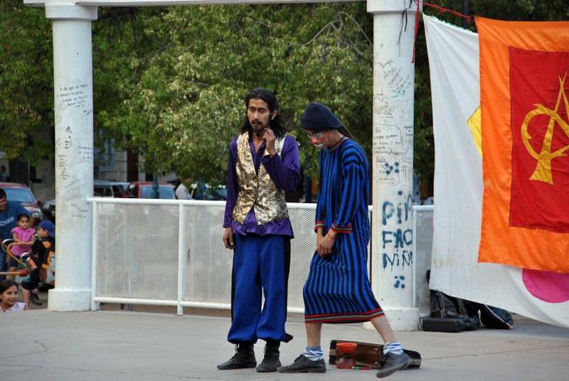 Kaum wurde es Abend, erwachte die Stadt aus ihrem Tiefschlaf und die Plaza Independencia war gerammelt voll. Ein 2-Mann-Kabarett unterhielt hier Jung und Alt und wir wurden einfach so unfreiwillig Statisten.
