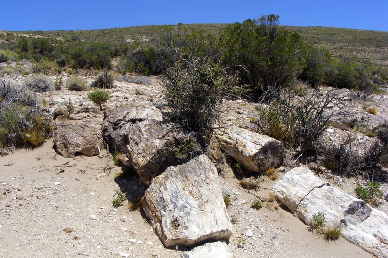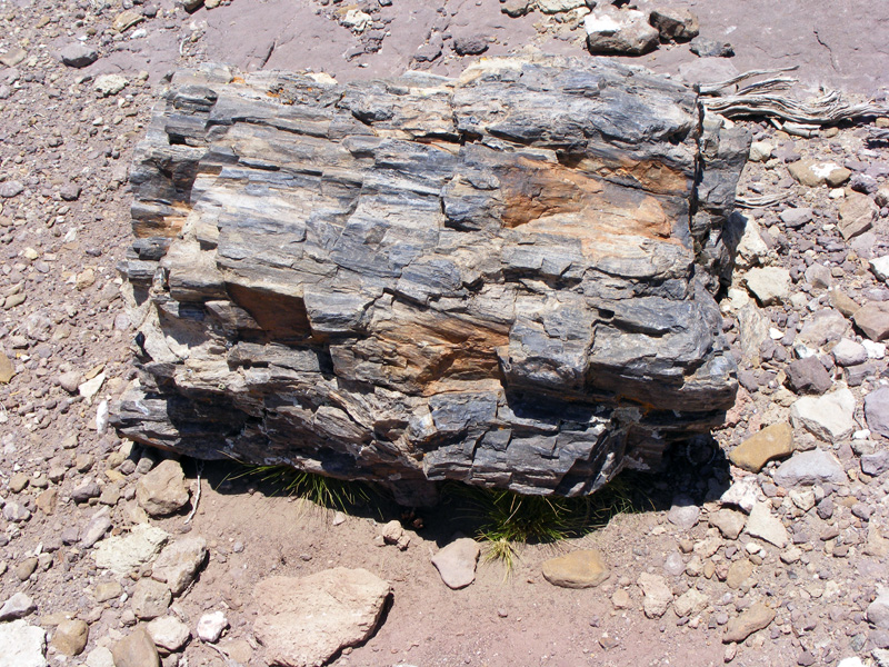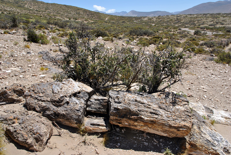 Wir machten einen kurzen Abstecher zum versteinerten Wald, um einfach so festzustellen, dass es eigentlich nichts mehr davon zu sehen gab. Es lagen nur noch minimale Reste herum. Der Bestand wurde bereits von Kulturräubern extremst dezimiert. Kurz darauf hatten wir noch eine kurze Schotterstrecke zu bewältigen.