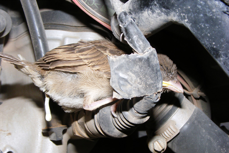 Am nächsten Morgen bepackten wir wieder unsere Bikes, wobei Konni einen kleinen gefiederten Freund fast zu Tode erschreckte. Als er seinen Tankrucksack festzurrte bemerkte er, dass einfach so ein Jungvogel auf seinem Kühlerschlauch saß und vor Schreck zu Eis erstarrt war. Der Kleine war nachts aus dem Nest gefallen und hatte in der BMW Schutz gesucht.