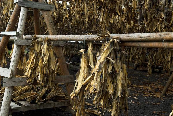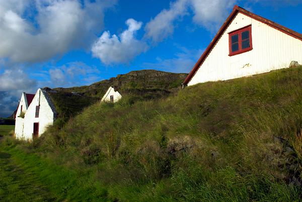 Das Geschrei der Nachbarcamper ließ ab 4 Uhr morgens keinen Schlaf mehr zu und so pellte ich mich aus meinem Schlafsack, frühstückte, baute mein Zelt ab und fuhr los. Der Ringstrasse folgend ging es durch die grüne Landschaft. Fischbestückte Holzgestänge erregten meine Aufmerksamkeit und ich hielt am Straßenrand an, um mir das mal genauer anzusehen. Der beliebte Snack Harofiskur ist an der Luft getrockneter Schellfisch, der bis zu einem Jahr über diesem Holzgestänge hängt, bis er zerfällt. Abgesehen von dem Anblick finde ich auch den Geruch schon recht abstoßend. Aber Geschmäcker sind ja Gott sein dank verschieden.