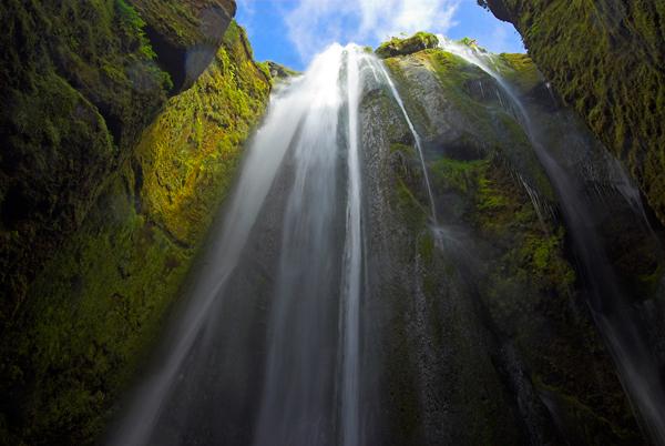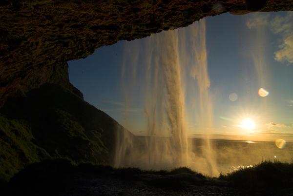 An dem kleinen beschaulichen Campingplatz Hamrargardar schlug ich direkt am Fuße der versteckten Wasserfälle Gljufurarfoss mein Zelt auf und wanderte an den Wasserfall Seljalandsfoss. Über einen kleinen glitschigen Weg kommt man hinter den Wasserfall, welches sehr beeindruckend ist. Im warmen Abendlicht sah das ganze noch viel schöner aus.
