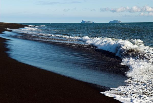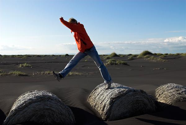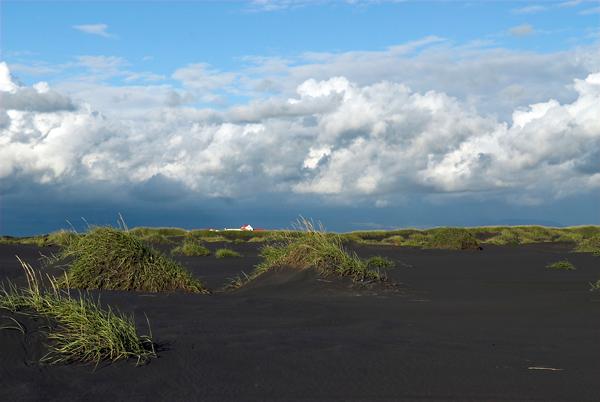 Mit den ersten Sonnenstrahlen am Morgen fuhr ich Richtung Küste. Als die Asphaltstrasse endete, holperte ich mit dem Landrover über Schotterwege bis der schwarze Lavasand ein Weiterfahren unmöglich machte. Der schwarze Sand der Ausläufer von Myrdalssandur wirken wie eine triste Mondlandschaft. Hier kann man Stundenlang am Meer entlang laufen, ohne das einem eine Menschenseele begegnet während die Felsbrocken der Vestmannaeyjar schwarz und bedrohlich aus dem Wasser ragen. Nach einem fauligen Tag am Meer bereitete ich mich auf die bevorstehende Trekkingtour vor.