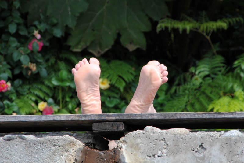 Auf dem Parkplatz der Therme von Poyuguapi hielten wir an und ich bekam mein breites Grinsen gar nicht mehr aus dem Gesicht. Wir fragten freundlich die Besitzerin, ob wir auf dem Parkplatz unser Zelt aufschlagen durften und stürzten uns direkt nach dem Aufbau in die heißen Becken mit direktem Blick auf das Fjord. Den ganzen Nachmittag verbrachten wir in den heißen Becken und ließen unsere Gaumen am Abend von Rosalita mit frischem Fisch verwöhnen.