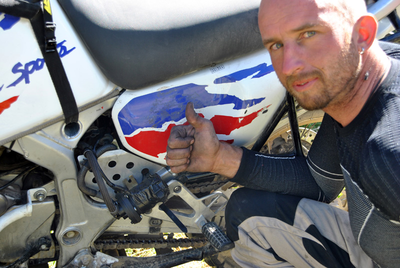 Meine Twin schaffte das Ganze natürlich locker und nachdem wir die Besitzerin Lilli Schindele vom Camping Rio Nadis begrüßt hatten, wurde die neu erworbene Autokraftstoffpumpe auch gleich MacGyver-mäßig an der Außenseite angebracht. Nun sah meine Lady richtig abenteuerlich und gefährlich aus.