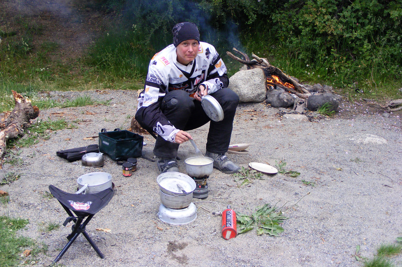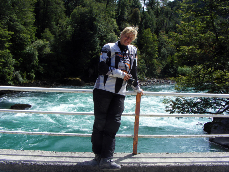 Am Paso Futaleufu brachten wir die Zollformalitäten hinter uns und rollten 10 km auf einer asphaltierten Straße in den Ort. Hier überlegten wir kurz, ob wir ein Hostal beziehen sollten, doch nachdem wir die Preise erfragt hatten, benötigten wir keine weiteren Auskünfte. Wir wollten nur übernachten und nicht den kompletten Ort kaufen, also fuhren wir ein Stück aus dem Ort hinaus und campten direkt am Fluss. Es war so heiß, dass ich mich freiwillig in die eiskalten Fluten des Flusses stürzte, während Konni nur die Zehen ins kühle Nass steckte. Als die Sonne untergangen war, verzog ich mich ins Zelt und verschlief Silvester komplett.