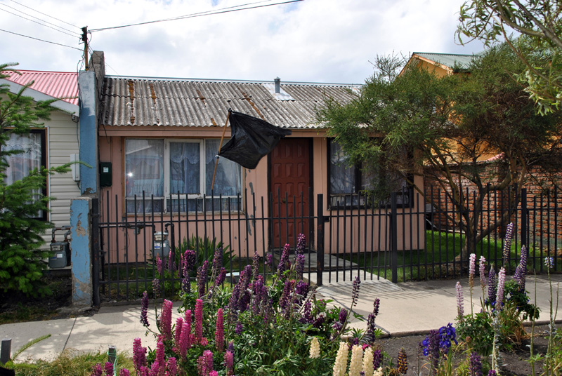 Puerto Natales war wie ausgestorben. Alle Geschäfte, Restaurants und Privathäuser hatten schwarze Fahnen zum Zeichen des Protestes gehisst, manche Häuser waren komplett mit schwarzem Plastik verhüllt. Es war fast schon unheimlich durch die menschenleeren Straßen zu fahren und nach einer Unterkunft zu suchen. Gleich beim ersten Versuch hatten wir einen Volltreffer und konnten im Hostal Southwind (www.southwindhostel.cl) einchecken. Die Besitzer waren super freundlich, die Zimmer total gemütlich und die Bikes waren auch sicher verstaut. Endlich mal wieder in einem richtigen Bett schlafen…das war toll!