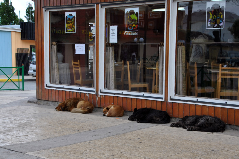 Der kommende Tag begrüßte uns mit Dauerregen, somit eröffneten wir diesen Tag erstmal mit einem ausgedehnten Frühstück. Bei solch einem Mistwetter jagt man schließlich nicht mal den Hund vor die Tür. Die Straßensperren gestanden immer noch und die Fronten hatten sich verhärtet, da in Punta Arenas am Abend durch einen Unfall 2 Frauen ums Leben gekommen sind. Ein übermotovierter LKW-Fahrer hatte versucht durch eine Sperre zu fahren. Somit saßen wir in Puerto Natales erst einmal fest. Ich legte mich nochmals aufs Ohr und schlief gute 4 Stunden bis ich mich doch noch dazu aufraffen konnte die Nase in den Wind zu stecken. Wir schlenderten durch die Stadt, in der auch das ein oder andere Geschäft wieder geöffnet hatte. Ab und an fuhren Autokorsos hupend durch die Straßen.