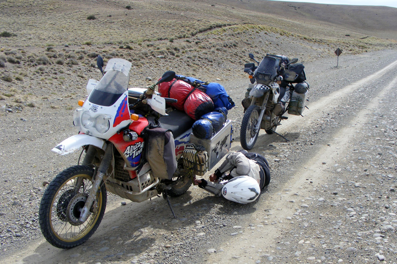 Wir stellten die Motorräder ab, packten das Vesper aus und verschafften uns einen Überblick. Nun stand der Weiterfahrt nach Puerto Natales nichts mehr im Weg, denn schließlich hatten uns die “Besetzer” persönlich durch die Sperre geführt. Nach unserer Brotzeit rollten wir in Schrittgeschwindigkeit aus der Menschenmenge hinaus.