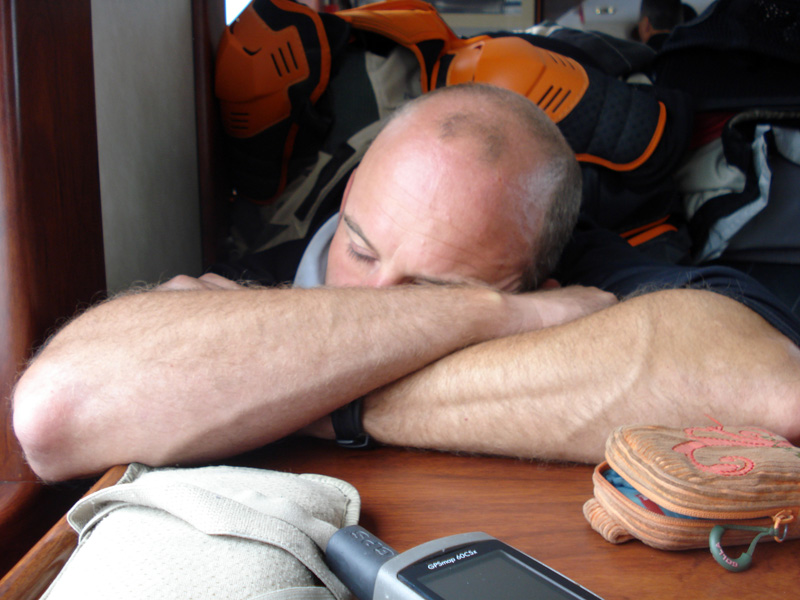 Gut ausgeschlafen kamen alle Gäste fast gleichzeitig viel zu spät zum Frühstück. Draußen regnete es Bindfäden und somit verpasste keiner etwas. Es wurde munter gequasselt und gelacht. Unser Hotelier rief nochmals bei der Fährgesellschaft an und bestätigte uns kurze Zeit darauf, dass die Fähre ablegen würde und der Streik inoffiziell vorbei sei.