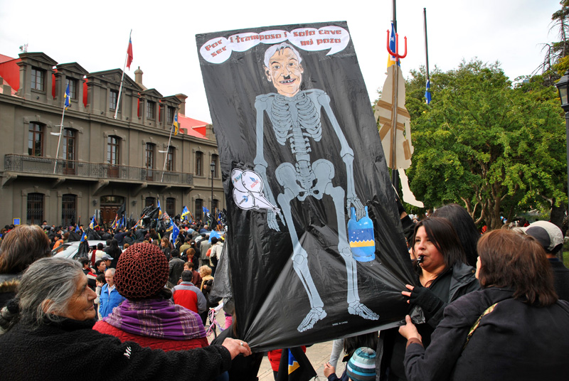 Wir fuhren in Richtung Punta Arenas aus der Stadt hinaus. Auch die dortige Strassenblockade war für uns kein Hindernis, obwohl Konnis BMW einen Tritt hinnehmen musste. Seither schmollt sie etwas.
