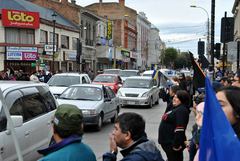 An der Sperre vom Flughafen Puerto Natales wurde uns bereitwillig Platz gemacht, während vollgestopfte Busse und Militärfahrzeuge die Durchfahrt weiterhin streng untersagt wurde. Somit konnten wir ungehindert nach Natales zum Tanken fahren. Mit gefülltem Tank, aber leerem Geldbeutel versuchten wir vergeblich in Puerto Natales an Bargeld zu kommen. Alle ATM waren leer.