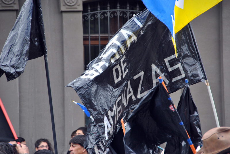 Bis zum Airport von Punta Arenas hatten wir die komplette Strecke wieder mal für uns alleine. Nun erwarteten uns 3 richtig massive und große Sperren, deren brennenden Reifen schon von Weitem zu erkennen waren.