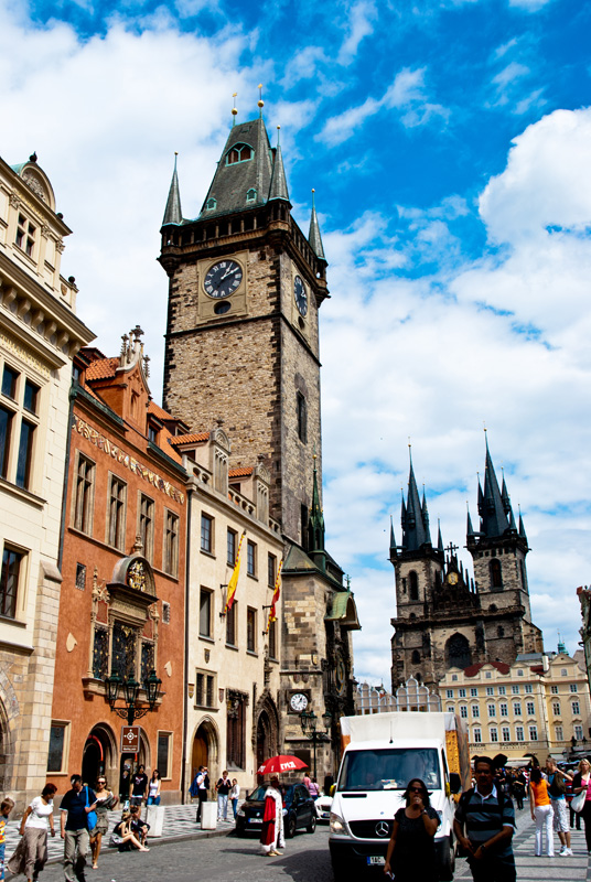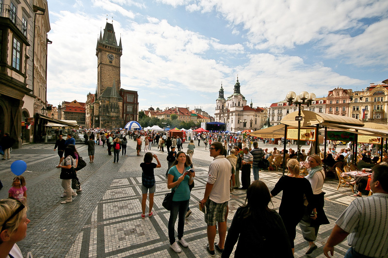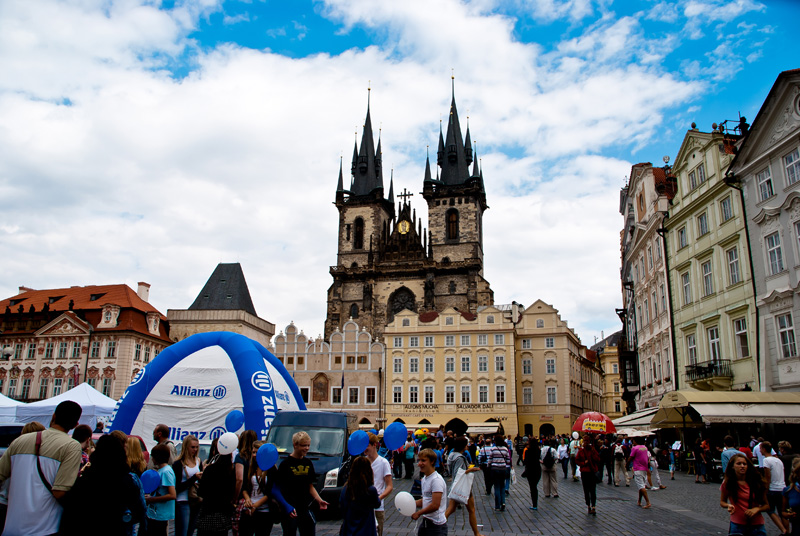 Am Staromestske namesti, der zu den schönsten Plätze der Welt zählen soll, gönnten wir uns eine Pause und bestaunten das bunte Treiben auf dem Platz. Hier fand eine für uns undefinierbare Veranstaltung statt und so wummerten die Bässe durch die schönen alten Fassaden.