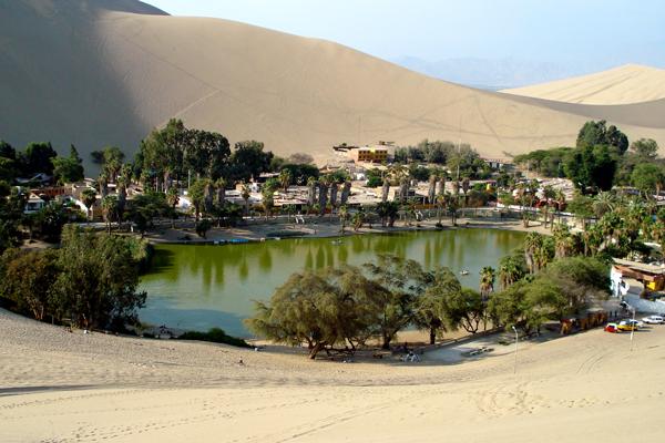 Diese kleine von gewaltigen Dünen umgebene Oase Huacachina, liegt 5km westlich von Ica.