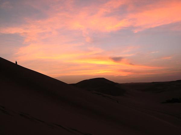 Ich suchte mir eine Unterkunft und erklomm dann eine der rieseigen Dünen, um den Sonnenuntergang zu genießen. Um nicht mit einem panierten Schnitzel verwechselt zu werden, befreite ich mich so gut wie es ohne fließend Wasser ging, von Sand, der sich wirklich überall einen Weg gebahnt hatte.
