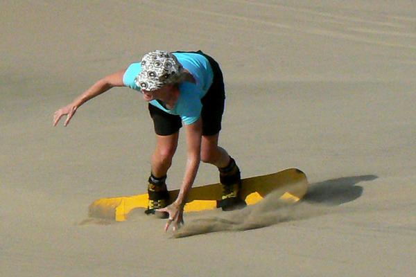 Mit viel Kraftaufwand konnte man dann die Sanddünen heruntergleiten, was mein kaputter Fuß nicht wirklich so gut fand. Da der Schmerz dann doch zu groß wurde, legte ich mich einfach bäuchlings auf das Brett und rutschte die Sandhügel hinunter.