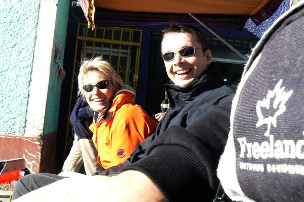 In unserem Hotel lernten wir Bernhard und Patrick kennen, mit denen wir gemeinsam den Titicacasee erkunden wollten. Mit Fahrradrikschas lieferten wir uns ein Wettrennen an den Hafen, um auf Perus berühmte Inseln den Islas Flotanes zu kommen.