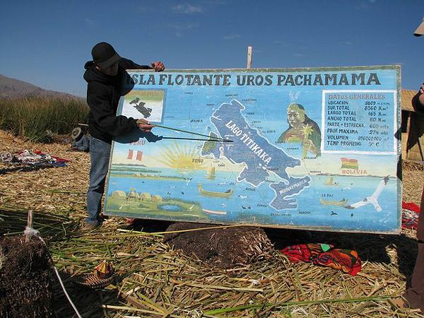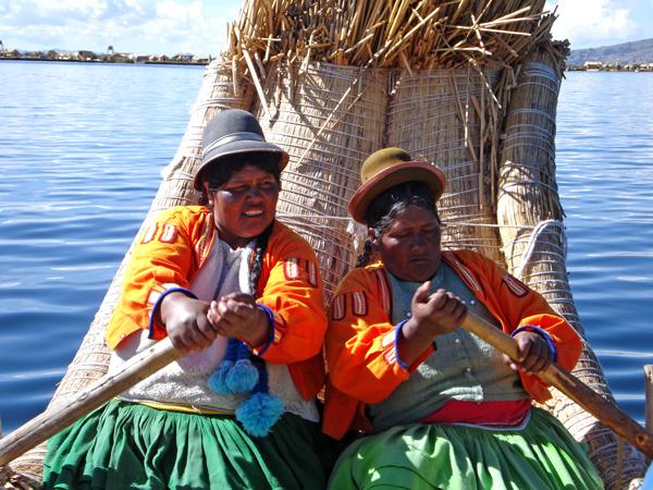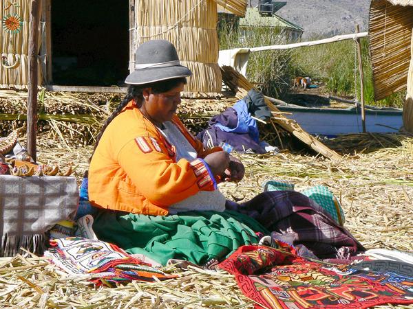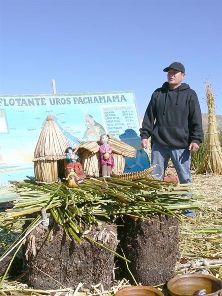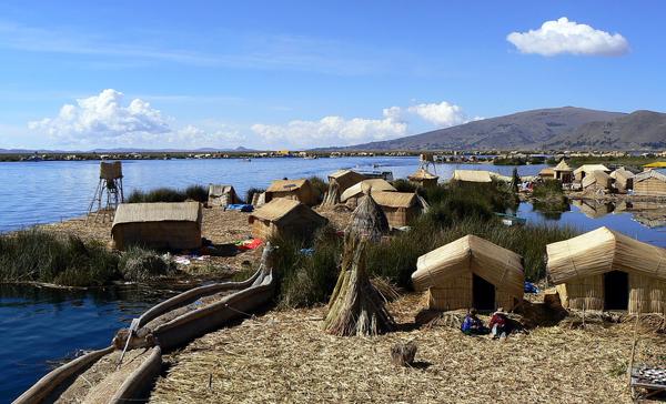 Die schwimmenden Inseln der Uros befinden sich 5km östlich von Punos Hafen und sind die wichtigste Touristenattraktion des Titicacasees. Diese Inseln werden aus Schilfrohren totora gebaut, die reichlich in den seichten Gewässern des Sees wachsen. Die Uros verwenden die Gräser, die teilweise auch essbar sind und ähnlich wie Spargel schmecken, zum Bau ihrer Häuser und Boote sowie zur Herstellung von Kunsthandwerk, welches sie an die Touristen verkaufen. Die Inseln bestehen aus vielen Schichten von totora. Sie werden ständig von oben wieder aufgefüllt, da sie im unteren Bereich vermodern. Der Untergrund ist daher immer weich und federnd. Der schwimmende Untergrund hält gute 40 Jahre, bevor die Insel komplett erneuert werden muss.