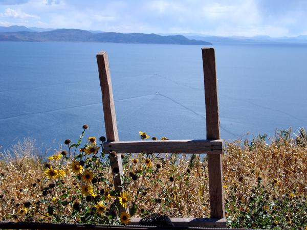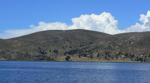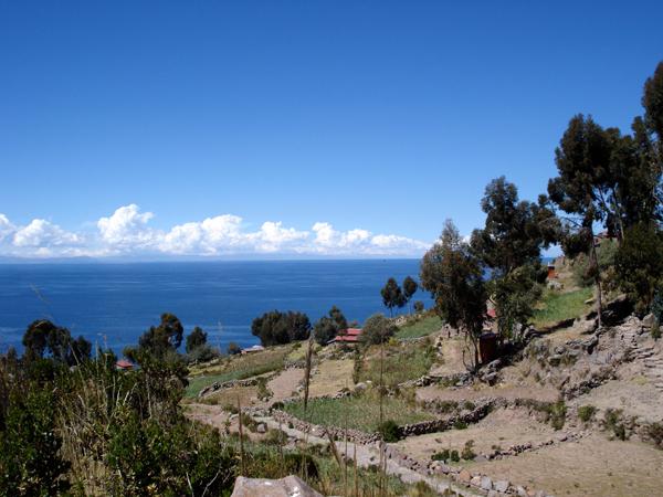 Von der Anlegestelle aus führt eine steile Treppe nach oben auf eine Höhe von 4080m. Die Landschaft ist wunderschön. Die Insel bildet mit ihrer roten Erde einen tollen Kontrast zu dem intensiven Blau des Sees vor dem glänzendem Hintergrund von Boliviens schneebedeckter Cordillera Real auf der gegenüberliegenden Seeseite. Die Insel überzeugt durch eine friedliche Atmosphäre und für uns Europäer witzige Traditionen.