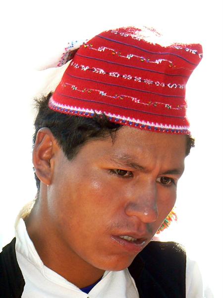 Männer tragen festgewebte Wollhüte, die wie Nachtmützen aussehen und die sie mit Stolz selbst stricken. Oft sieht man die Männer mit Stricknadeln über die Insel schlendern. Die Hüte symbolisieren den sozialen Status. Singlemänner tragen rot-weiße Hüte und verheiratete einen roten. Bunte Hüte werden nur vom Bürgermeister und Stadtrat getragen. Im den strengen traditionellen Formen gibt es allerdings auch sehr “moderne” Ansichten. Wenn Männlein und Weiblein sich sympathisch finden ziehen sie für 2-10 Monate zusammen, um festzustellen ob sie miteinander leben können. In dieser Zeit webt die Frau eine dicke bunte Bauchbinde mit 12 verschiedenen Motiven darauf und der Mann einen roten Hut. Wenn es tatsächlich zur Hochzeit kommt, übergibt die Frau den Hosenbund an ihren Mann und der Mann tauscht die weiß-rote Mütze gegen die roten. Falls sich merken, dass sie doch nicht füreinander bestimmt sind, gehen sie getrennte Wege und müssen den bereits angefangenen Hut und Bauchbinde wieder auftrennen. Ich kann mich immer noch darüber köstlich amüsieren!