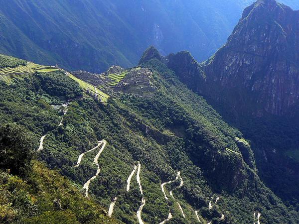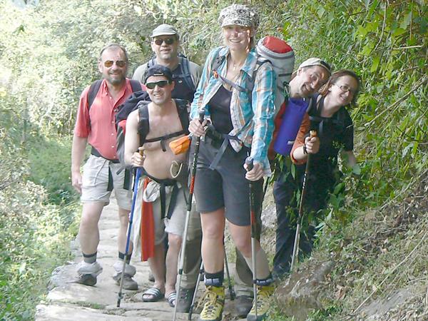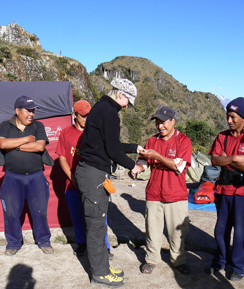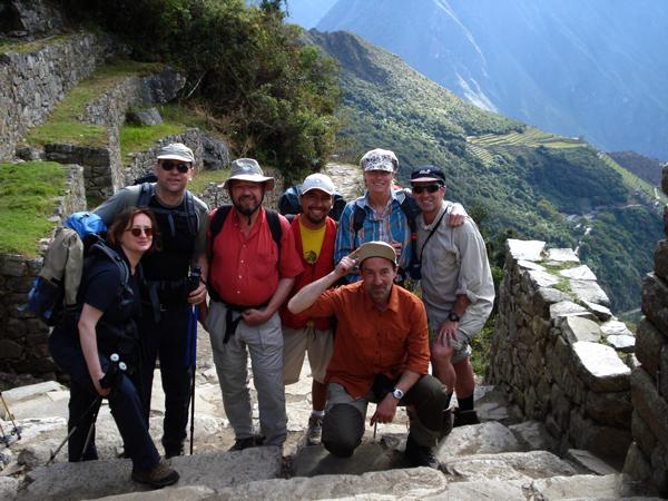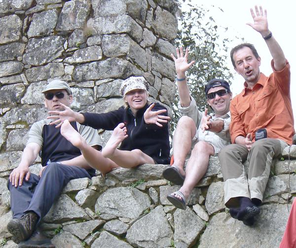 Der letzte Kilometer bis zum Sonnentor – Intipunku – wurde mal wieder, wie soll es auch anders sein, durch eine steile Treppe nach oben eingeleitet. Norbert hielt sein Versprechen, den letzten Kilometer nach Machu Picchu mit Badelatschen zu absolvieren, was uns alle sehr erheiterte. Nebeneinander standen wir vor dem Sonnentor und keiner wollte durchgehen, denn das würde den Schritt zurück in die Zivilisation bedeuten. Schweren Herzens wagten wir es dann doch und der wirklich atemberaubende Blick auf Machu Picchu erfüllte uns mit Stolz. Wir hatten es geschafft: We survived the Inka Trail!