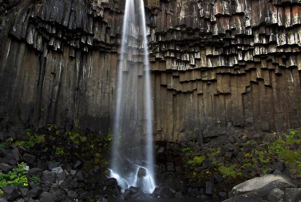 Nach dem “Hausbau” watschelte ich noch gemütlich an den Svartifoss, dem berühmten von schwarzen Basaltsäulen eingerahmten Wasserfall. Da es im August ja extrem lange hell ist, konnte ich mir nach dem langen Tag sehr viel Zeit lassen, um dieses tolle Fleckchen Erde zu genießen. Durch die schon fortgeschrittene Stunden hatte ich den kleinen Rinnsal für mich alleine.