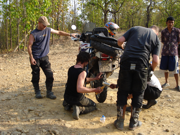 Allerdings durfte ich erneut eine Werkstatt anfahren, denn mein lieber Kofferträger war erneut gebrochen und ich musste ihn schweißen lassen. Ich hatte die Schnauze von diesem Teil gestrichen voll. Daher beschloss ich den direkten Weg nach Pokhara zu nehmen, um eine Werkstatt zu finden, die mir den Träger stabiler machen kann, während die Jungs einige Kilometer Umweg fuhren um mehr Kilometer auf Ihren Tacho verzeichnen zu können.