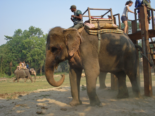 Mit einem Elefantenritt und einer Wanderung durch den Dschungel inkl. Begegnungen mit Rhinos verkürzten wir uns die Zeit.