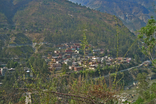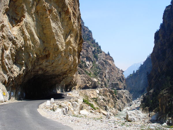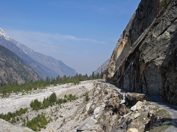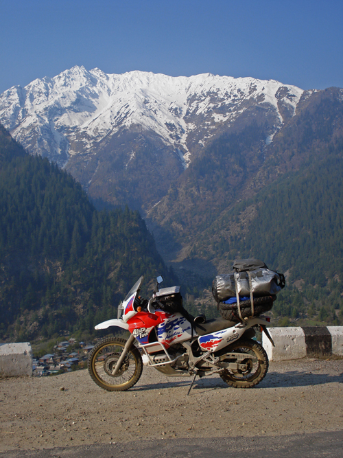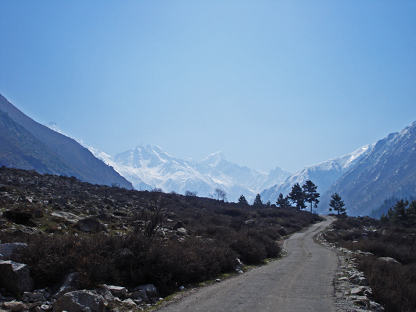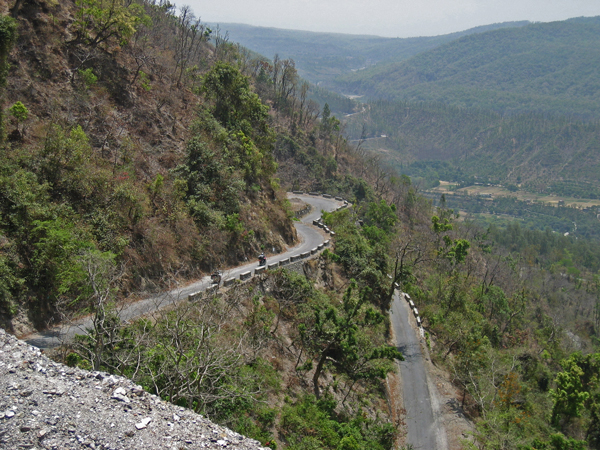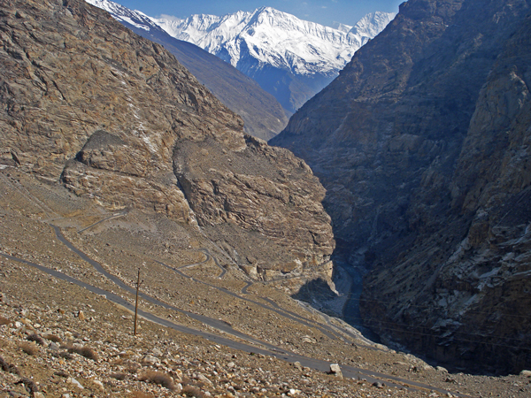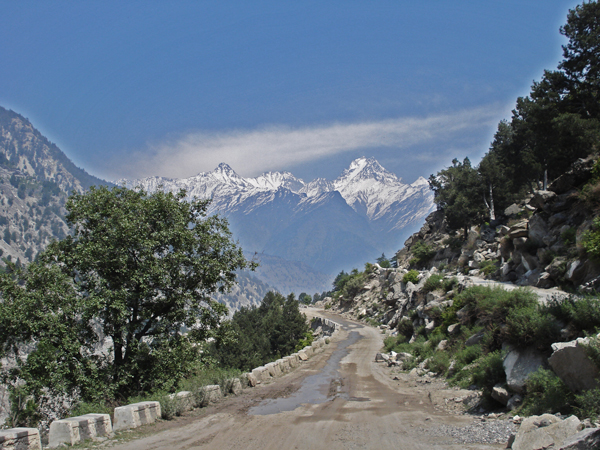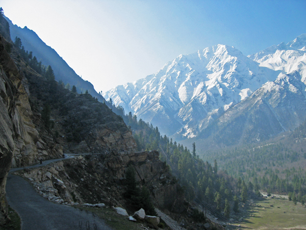 Der Weg schlängelte sich in schönen Serpentinen durch eine wunderbare Berglandschaft, stets mit Blick auf den schneebedeckten indischen Himalaya.