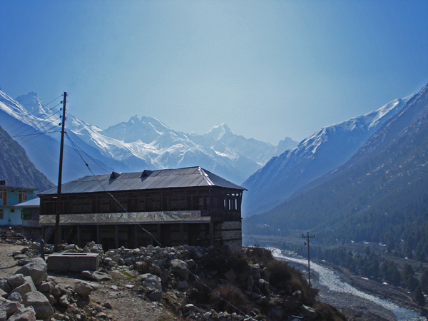 Das grandiose Bergpanorama des indischen Himalayas strahlte uns entgegen. Die Aussicht war atemberaubend! Die 6000er erhoben sich vor uns in den tief blauen Himmel. Wir konnten uns fast nicht daran satt sehen, doch unsere knurrenden Mägen führten uns wieder zurück nach Sangla zum frühstücken.