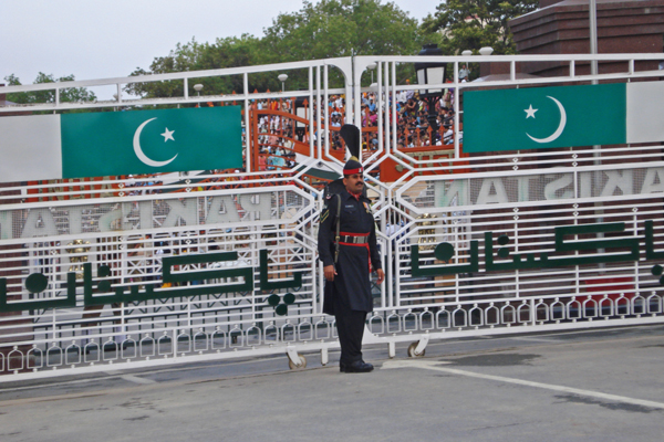 Die offizielle Wachablösung brach der Stimmung keinen Zacken aus der Krone, obwohl das Ganze bei den Soldaten sehr ernst gemeint ist. Diese Burschen verzogen aber auch überhaupt keine Miene und preschten im Stechschritt und mit Kampfgebärden an die indische Grenze.