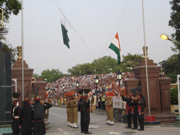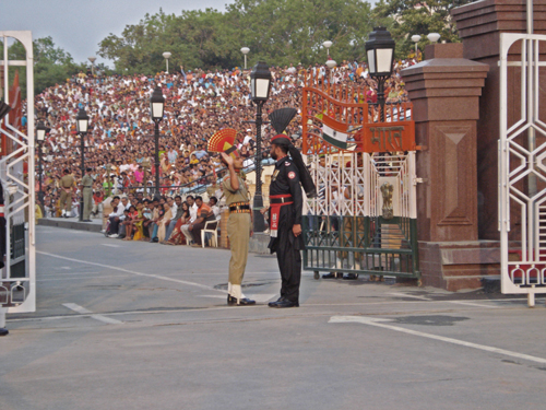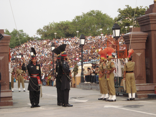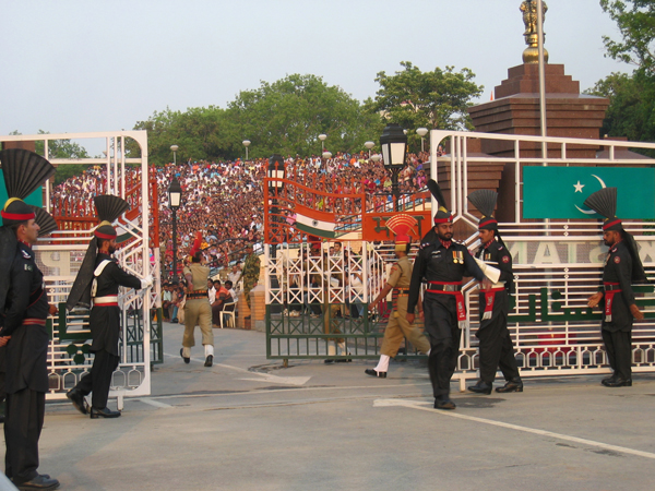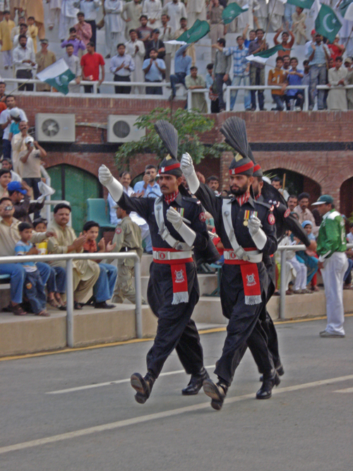 Die Wachablösung, welche zeitgleich mit den Indern abgehalten wird, ist ein wahres Spektakel. Tausende von Menschen stehen auf beiden Landesteilen auf feststehenden Tribünen, wobei auf der pakistanischen Seite richtig gefeiert wurde.