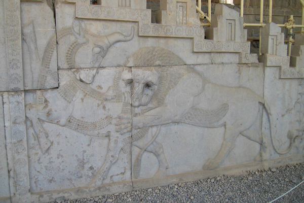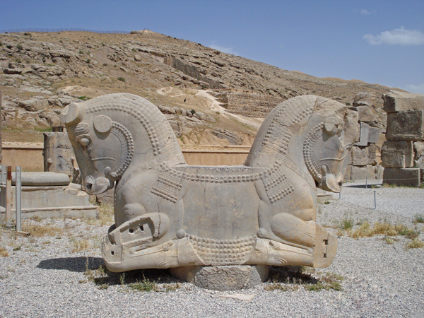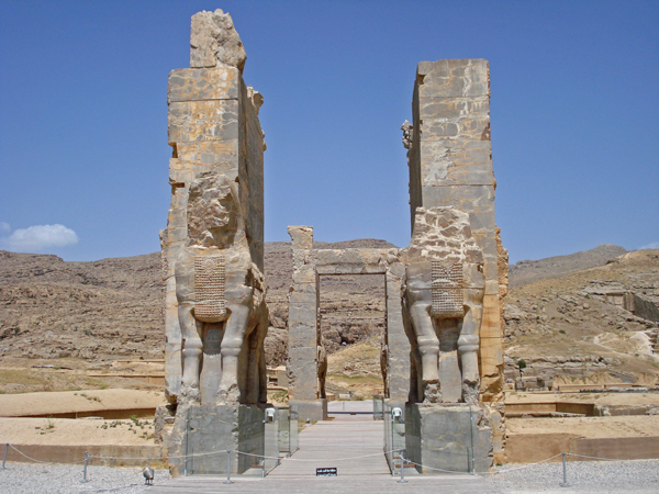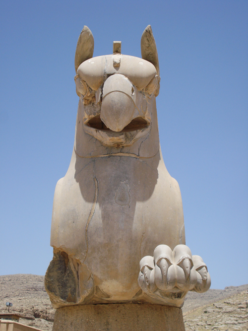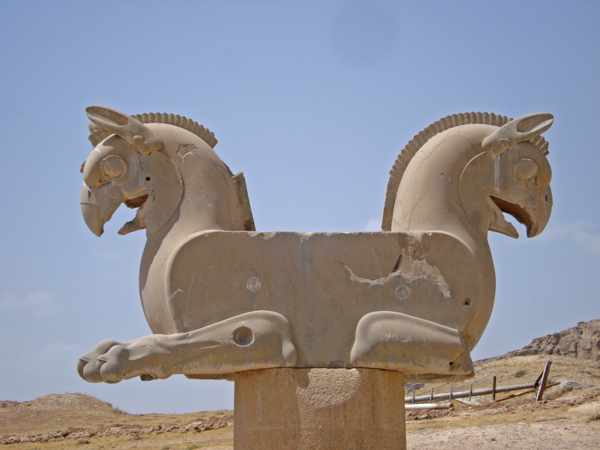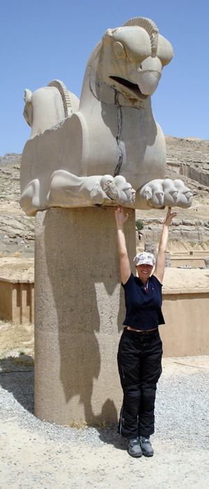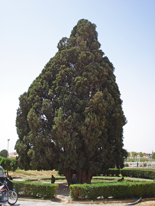 Am nächsten Tag führte uns der Weg nach Abarkuh. Dort standen wir eine ganze Zeit lang unter einer 4000 Jahren alten Zypresse und staunten über den skurril gewachsenen Stamm und Äste. Danach steuerten wir die Ruinenstadt Persepolis an und schlenderten in brütender Hitze durch die alten Säulen.