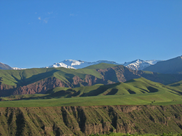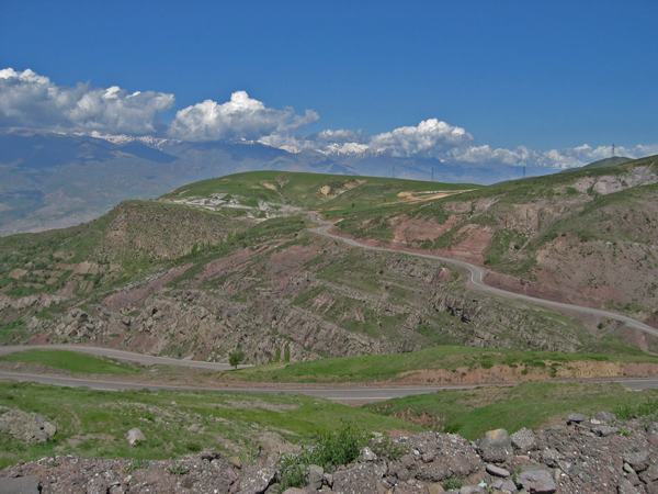 Nach gar nicht so vielen Kilometern erreichten wir ein phantastisches Tal. Die Straße zog sich durch eine extrem grüne und zum Teil noch schneebedeckte Berglandschaft. Nach so viel Beton und Wüste tat das Grün richtig gut! Wir fuhren gemütlich dahin, kauften unterwegs noch einige Lebensmittel ein und suchten uns einen wirklich abgelegenen Zeltplatz.