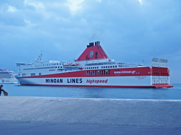 Als wir um 6:45 Uhr am Hafen von Korfu waren, suchten wir erst mal nach unserer Fähre. Die hatte aber noch gar nicht angelegt und so warteten wir mit hunderten von anderen Passagieren.