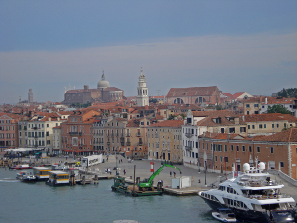 Wir frühstückten und suchten uns dann einen guten Aussichtspunkt, damit wir die Hafeneinfahrt in Venedig gut sehen konnten.