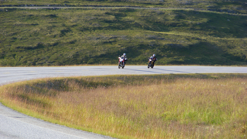 Nach unserem Mahl schwangen wir uns wieder auf die Motorräder und fuhren an einem Fluß entlang. Die Straße war genial! Leider mussten wir uns dann auch bald wieder in die Regenklamotten werfen und je näher wir in Richtung Finnland kamen umso gerader wurden die Straßen.