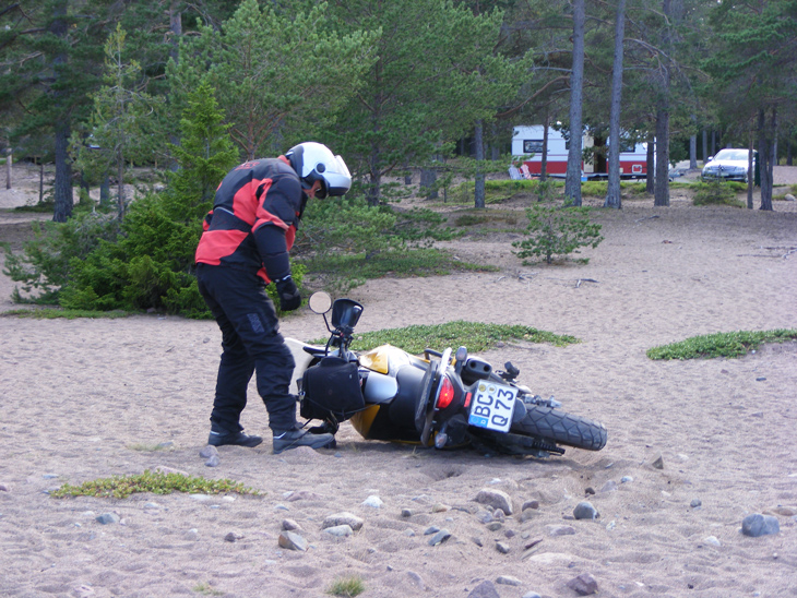 In Mjällmom errichteten wir dann unser Nachtlager und erkundeten noch die Gegend, wobei Paps sich am Strand gleich mal eine Sandtaufe abholte und auf die Seite legte.